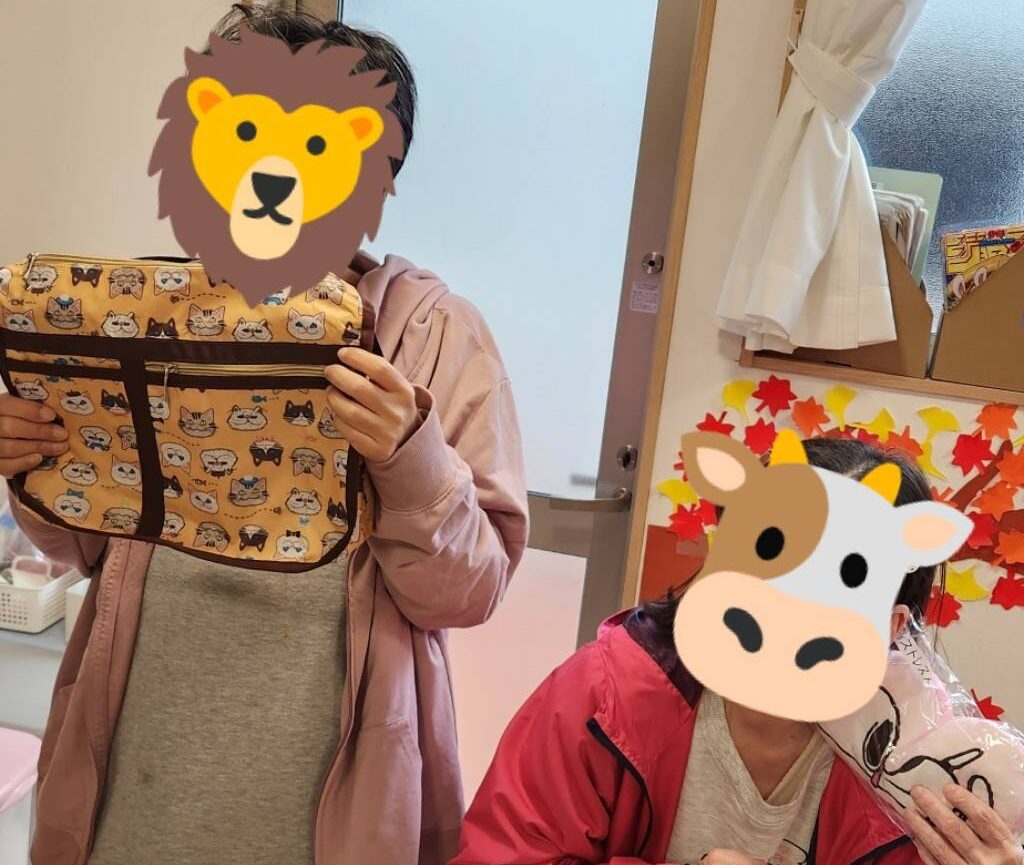 キャラクターのバッグやポーチなどお気に入りの景品を手に