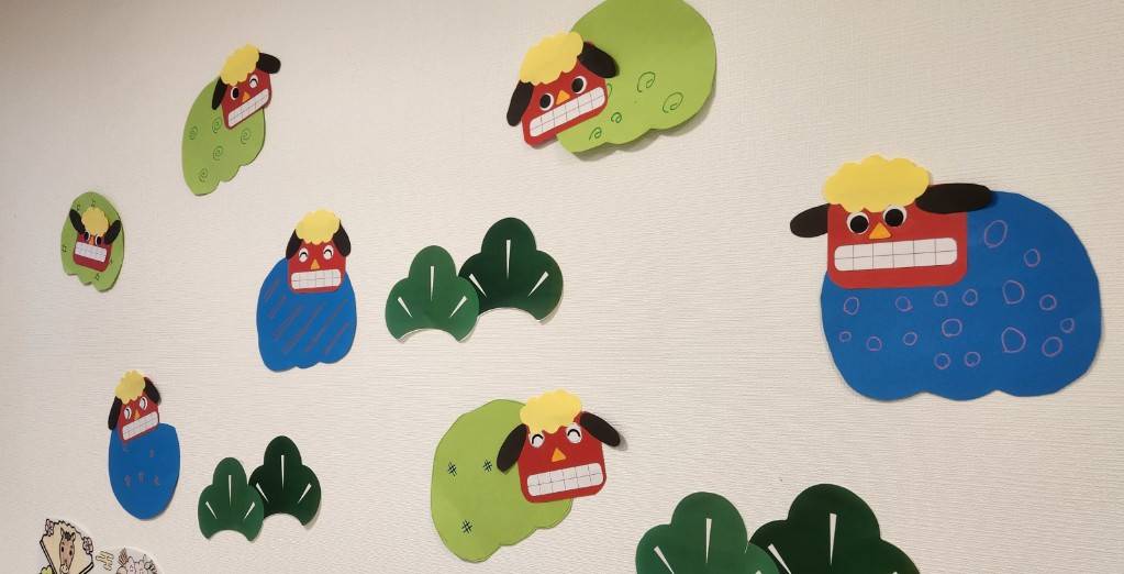 その周りには皆さんが心を込めて工作したたくさんの獅子舞たちが賑やかに躍っています!